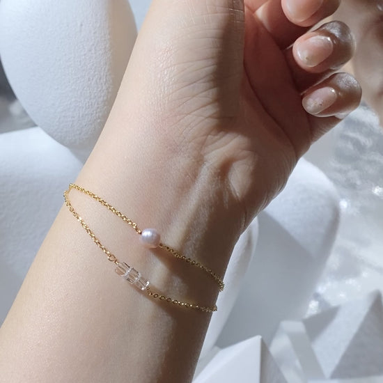 BC010 - 18K包金珍珠雙層手鏈 -淡水珍珠配白水晶 PlainP