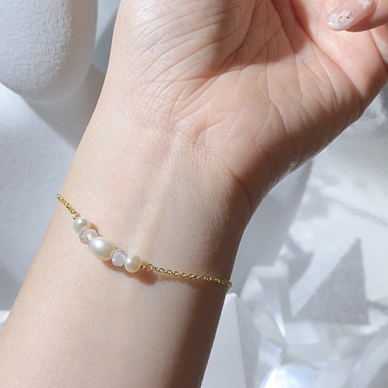 BC006 - 18K包金蕾絲手鏈 -珍珠/月亮石 Moonlight