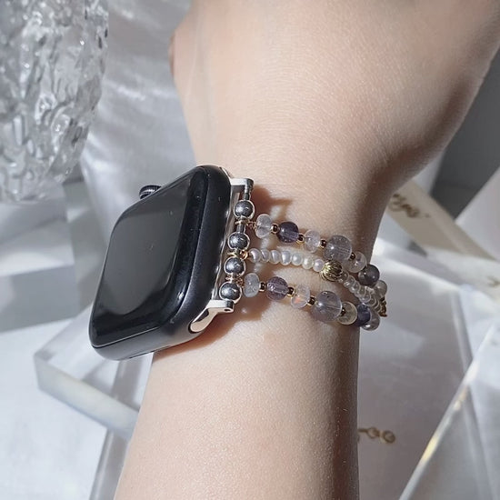 AW03 - Apple watch錶帶 - 極細淡水珍珠配月亮/拉長/堇青